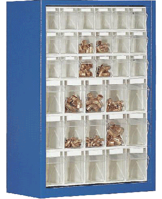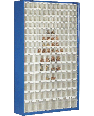 Le rack de stockage Stala Perfect ST P 69 est réalisé en acier laqué de couleurs gris (RAL 7035) ou bleu (RAL 5010) de format 665 x 2000 x 250 mm et est composé de 2 sets de stockage Stala différents :