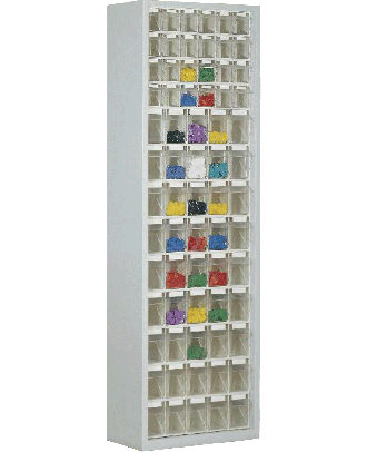 Le rack de stockage Stala Perfect ST P 86 est réalisé en acier laqué de couleurs gris (RAL 7035) ou bleu (RAL 5010) de format 1270 x 2000 x 250 mm et est composé de 3 sets de stockage Stala différents :
